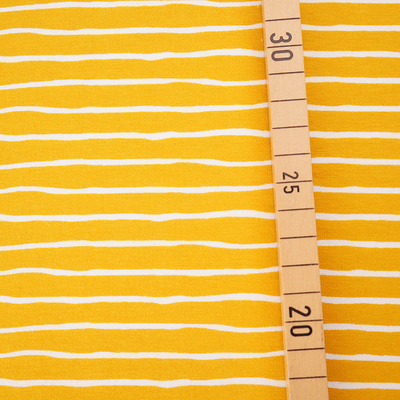 ..ist ein weicher, elastischer Stoff, gewirkt oder gestrickt. Dem Baumwolljersey wird 2-8% Elasthan beigemischt. Dadurch ist er dehnbarer und bleibt besser in Form. Aus diesem Stoff lassen sich Kleider, Hosen, Röcke, Shirts, Mützen uvm. nähen.